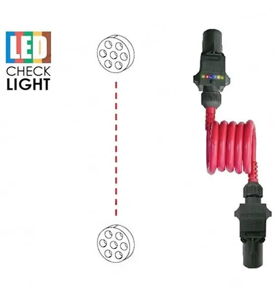 LED car coil extension - 7 pin small round socket to 7 pin small round socket with LED check light, 1m coil