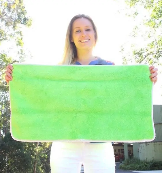 - Super absorbent microfibre towel that literally sucks water into its fibres, so you can dry in half the time.