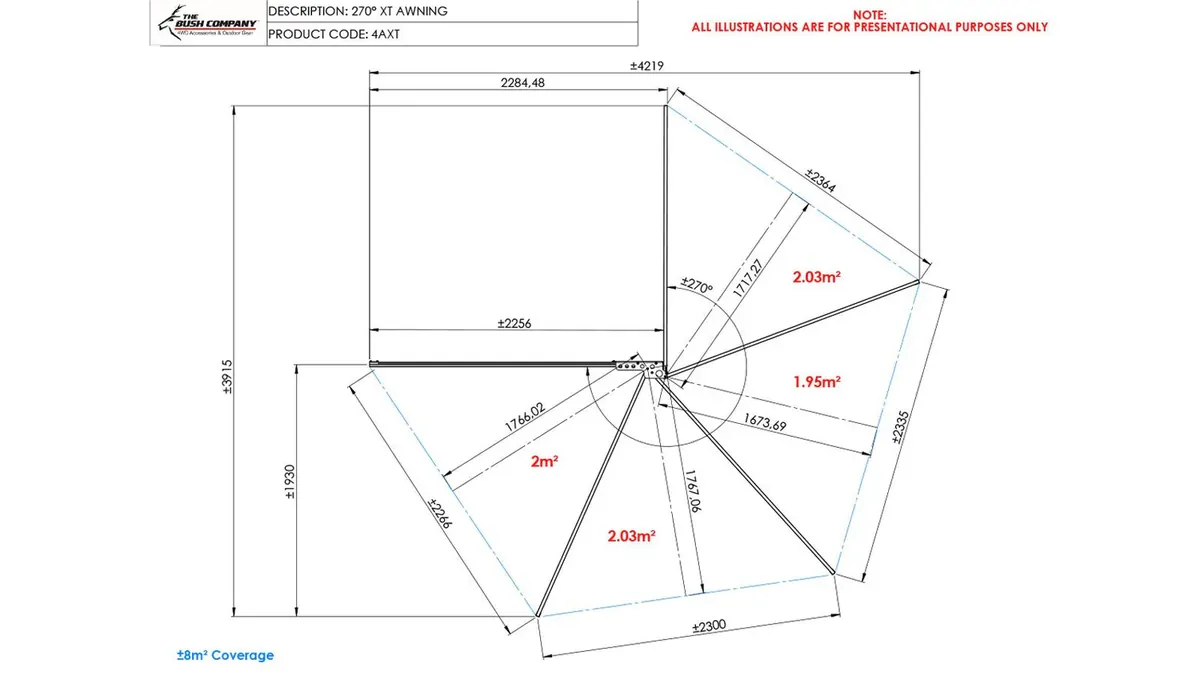 The 270 XT Awning Mk2 sets new benchmarks for afree standing shade awningin terms of overall strength, wind resistance and durability. The 270 XT Awning Mk2 provides an incredible8sqm (86sqft)of shade around your 4WD for you to set up your camp kitchen, swags or just a shaded seating/chill out area.