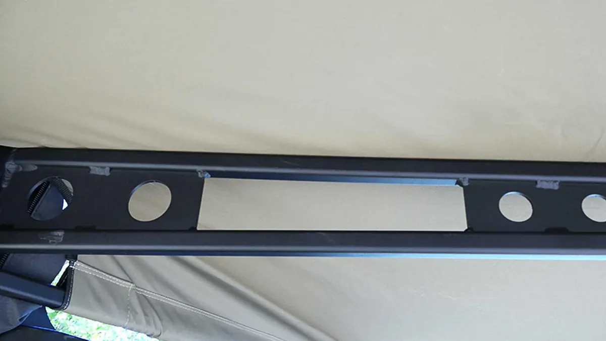 There are 2 Heavy Duty L brackets supplied with the 270 XT Awning Mk2. One fitment bracket must be attached to the stainless steel head stock at the hinged end of the awning no more than 200mm (7 ⁷/₈inch) from the hinged end, The second bracket must be mounted no less than 1.3m (4′ 3″) from the bracket at the hinged end. To mount the awning to one of our rooftop tents you will need anAwning To Tentbracket which are sold separately.