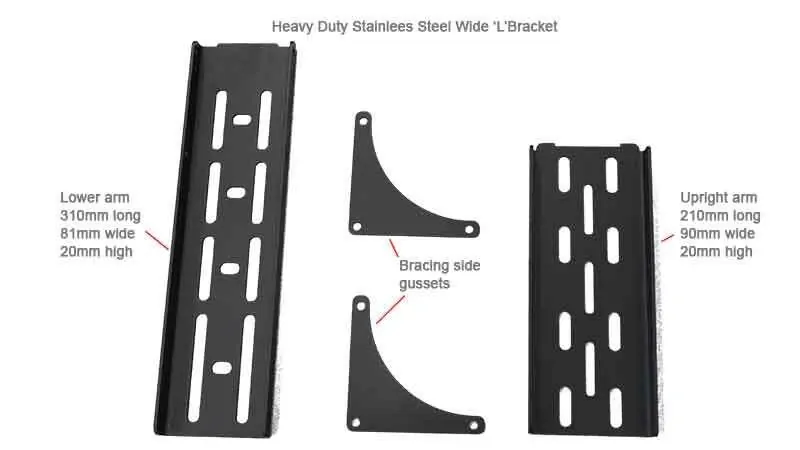The 270 XT MAX Awning Mk2 requires a fitment bracket attached to the stainless steel head stock at each end of the awning frame no more than 200mm (7 ⁷/₈inch) from each end, there are3 Heavy Duty L brackets supplied with the awning. The awning is not suitable to be fitted to a roof rack shorter than 1.9m (75″) in length or to load bars where the width from front to rear is less than 1.9m (75″). We recommend having a third bracket positioned in the middle of the awning.