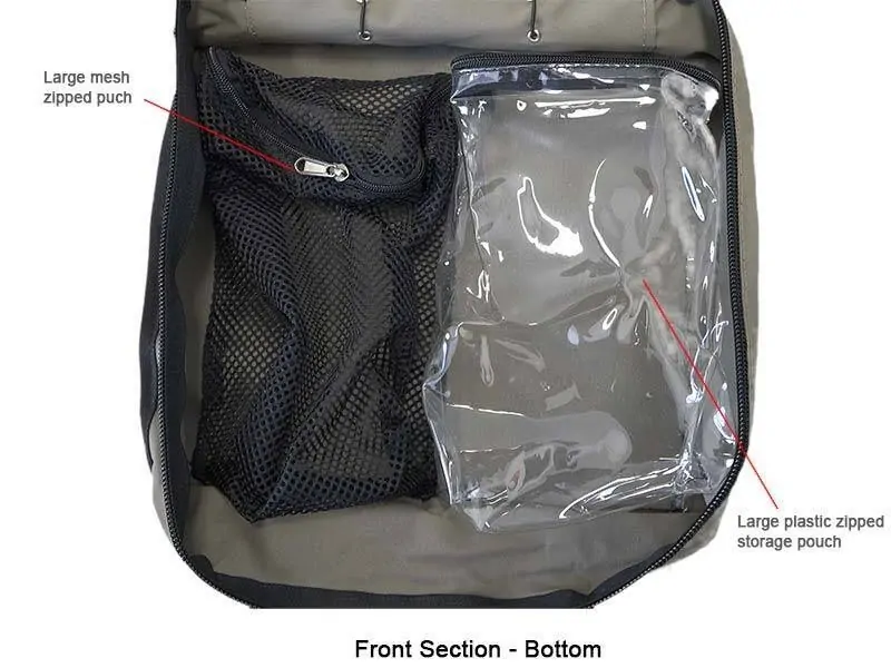 Deluxe Toiletry Travel Bag is the perfect versatile travel companion, use as a large toiletry bag or as a combined travel and toiletry bag for short trips. Made from high quality 320gsm canvas with YKK zips, the Deluxe Toiletry Travel Bag has two large main sections each with air/drain mesh down both sides. One side is design to hold toiletries and has 4 large zippered compartments (two clear plastic and two mesh) and a small vanity mirror, while the other side can be used for storing clothes, towels or swimming togs. There is a large zippered flat pouch on the front and a sturdy metal hook on the rear enabling you to hang the bag on doors etc. as well as very strong webbing carry handles.