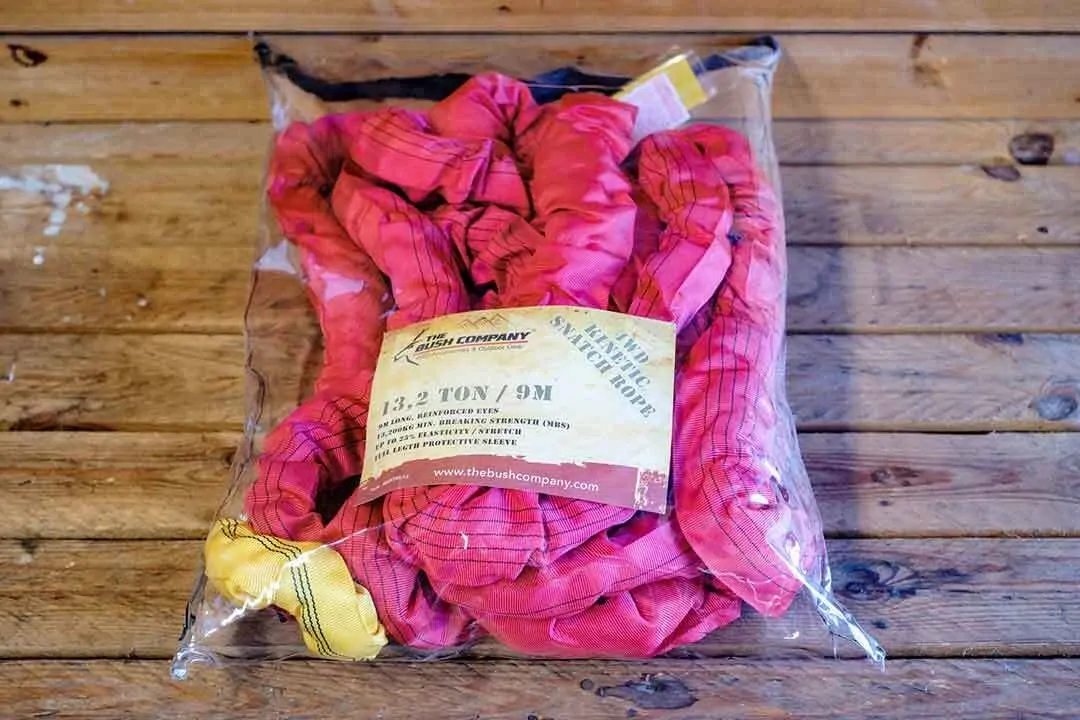 The Bush Company kinetic snatch recovery rope 13.2t provides a safer and smoother way to recover a a stuck vehicle. Unlike traditional snatch straps which only provide approximately 15% kinetic energy, The Bush Company kinetic snatch recovery rope 13.2t give up to 25% stretch significantly reducing strain on the vehicles, whilst making the recovery less violent and ultimately safer. During vehicle recovery the kinetc snatch recovery rope stretches and absorbs the energy coming from the pulling vehicle. this energy is transferred to the stuck vehicle, resulting in very effective & efficient recovery.