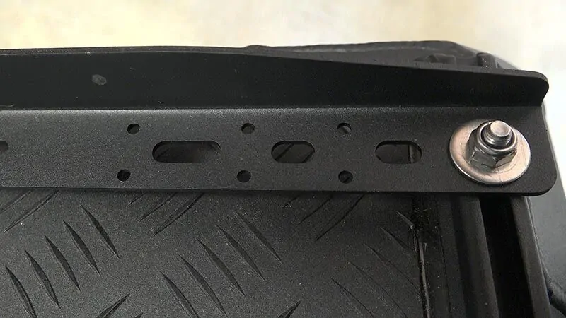 The brackets mount to the rails on the roof of The Bush Company tents using the laser cut mounting holes and supplied stainless steel bolts. The solar panel can be secured to the brackets using the supplied rivets through the pre-drilled holes in the bracket, you will need to drill the holes in the edge of the solar panel frame as required. The solar panel mounting brackets ensure that there is still airflow underneath the panel which helps to maintain the output efficiency of the panel.