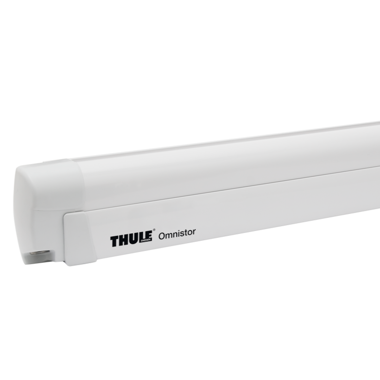 - White cassette awning, available from 4.0m to 6.0m with Alaska Grey vinyl roof.