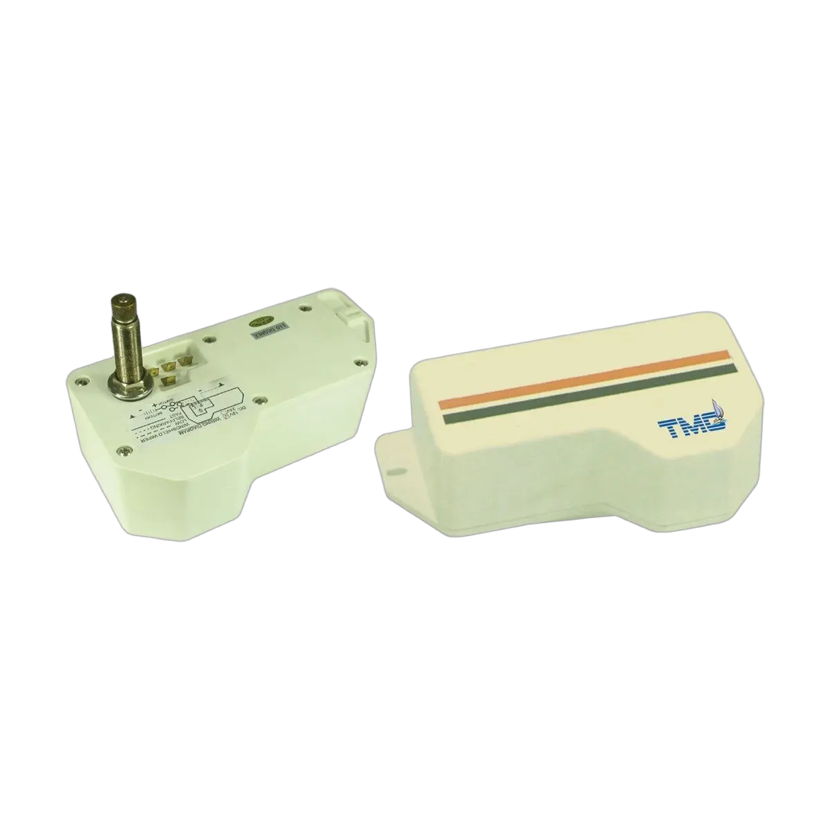 Heavy duty, self parking two speed wiper with 110º sweep angle. Motor is shrouded by a white plastic cover. Exposed shaft is brass with stainless steel spline drive. Suitable for use with the blades and arms below. Sold individually.