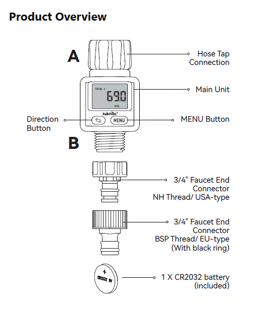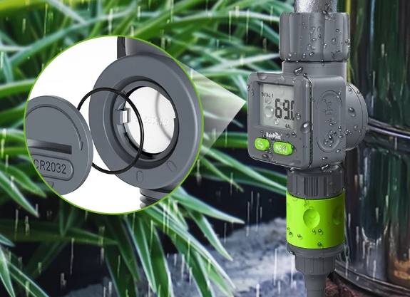 Topargee RainPoint model ICS006-DLS includes a low battery indicator. Battery Type 1 x CR2032 (included)