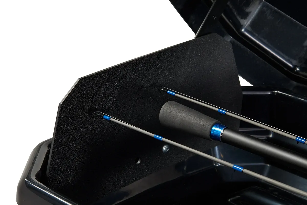 - Carry up to 8 fully rigged-up fishing rods of any style, up to 2.5 m long