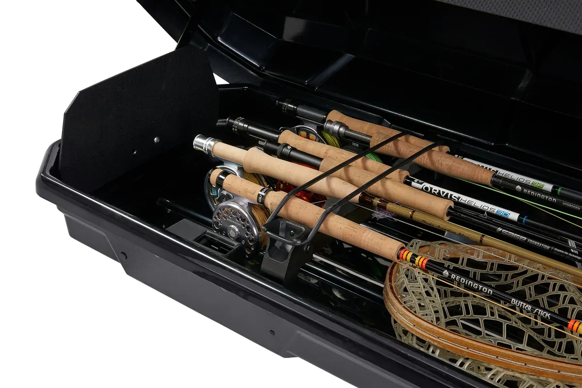 Ready to go when the fish are biting, the TopWater™ is a purpose-built, enclosed fishing rod box - keeping you prepared to hit the water with up to 8 fishing rods, up to 2.5 m long, fully rigged, organised, and out of the vehicle. From spin to bait casting to fly rods, the protective foam pads and retention straps keep rods and reels safely suspended in place without getting banged around or entangled. The space below your rods makes room for low-profile tackle boxes or other wet gear. Made in the USA, this strong and rugged fishing rod box locks your gear with an included Yakima SKS (Same Key System) lock.