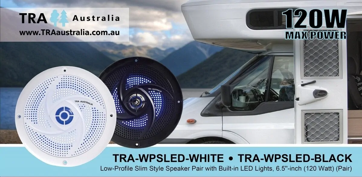 White LED 6.5inch Waterproof Low-Profile Speaker (Pair)