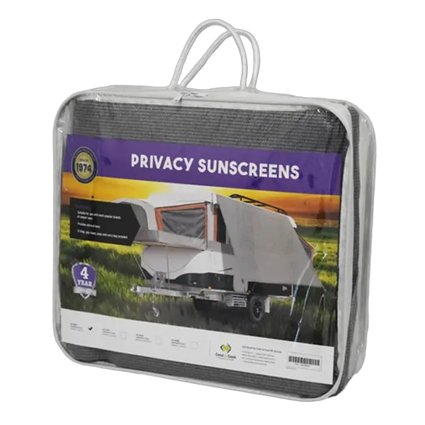 Coast to Coast have a brand new range of Sunscreens that offer plenty of shade and privacy around the RV at an unbeatable price. They’re designed to suit most popular awning styles and van types,including end walls to suit both caravans and pop tops. Each sunscreen is backed by a huge 4 year warranty and comes complete with D rings, guy ropes, pegs and a convenient carry and storage bag.