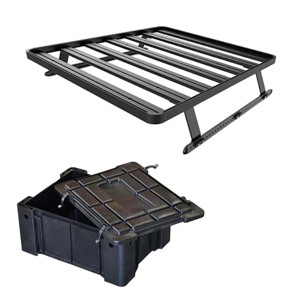 This kit creates a full size rack that sits above your Pick-Up truck bed. This Slimline II cargo carrying rack kit contains the Slimline II tray (1425mm x 1358mm), 2 Tracks, and 4 Pick-Up Truck Bed Universal Legs that fit into the Tracks.