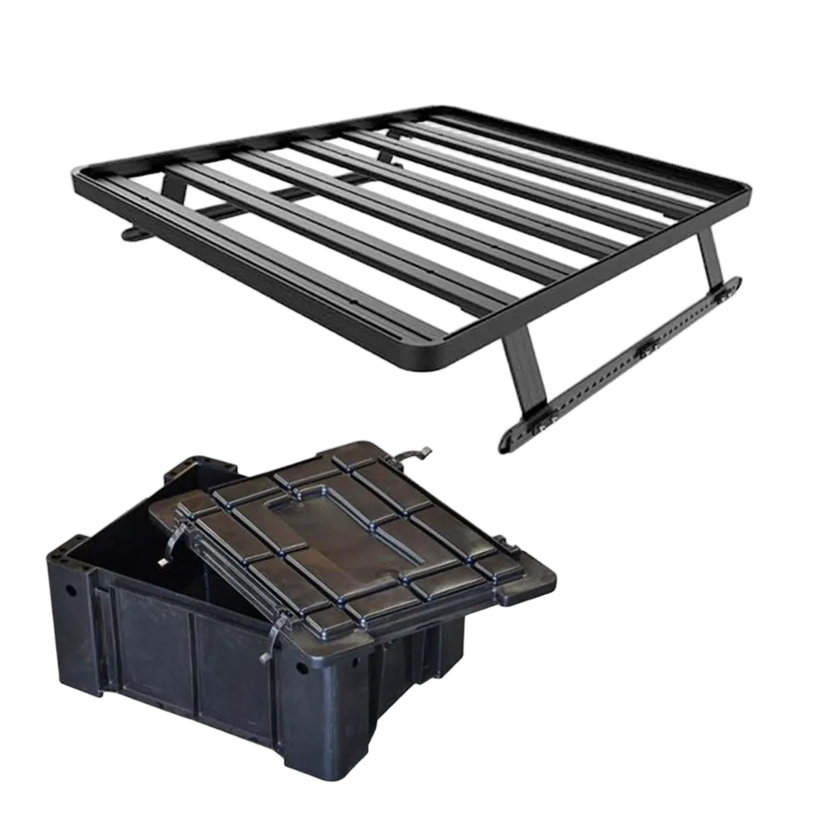 This kit creates a full size rack that sits above your Pick-Up truck bed. This Slimline II cargo carrying rack kit contains the Slimline II tray (1475mm x 1358mm), 2 Tracks, and 4 Pick-Up Truck Bed Universal Legs that fit into the Tracks.