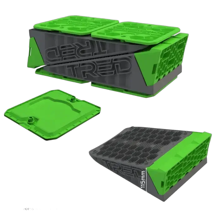 With up to 115mm of levelling lift, mounting options available, drainage holes, and TRED-Link design to nest all components together in one part for easy grab and go convenience, the TRED GT levelling products are perfect for any vehicle, trailer, or caravan.