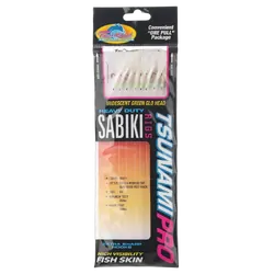 Catching live bait is easy with the premium quality Tsunami Sabiki Rigs. Each rig is made from quality near-invisible line so the baitfish can't see it. You have a choice of size 6, 8, 10, 12, 14 and 16 hooks with various colour combinations of flash and beads. Each Sabiki Rig is ready to catch bait right out of the packet, but some anglers add bait to each hook and berley with stale bread attract baitfish. HOT TIP: Avoid tangles and use Sabiki rigs with the affordable Jarvis Walker Sabiki rod. It's hollow so the rig slides neatly inside it and it works with any reel.