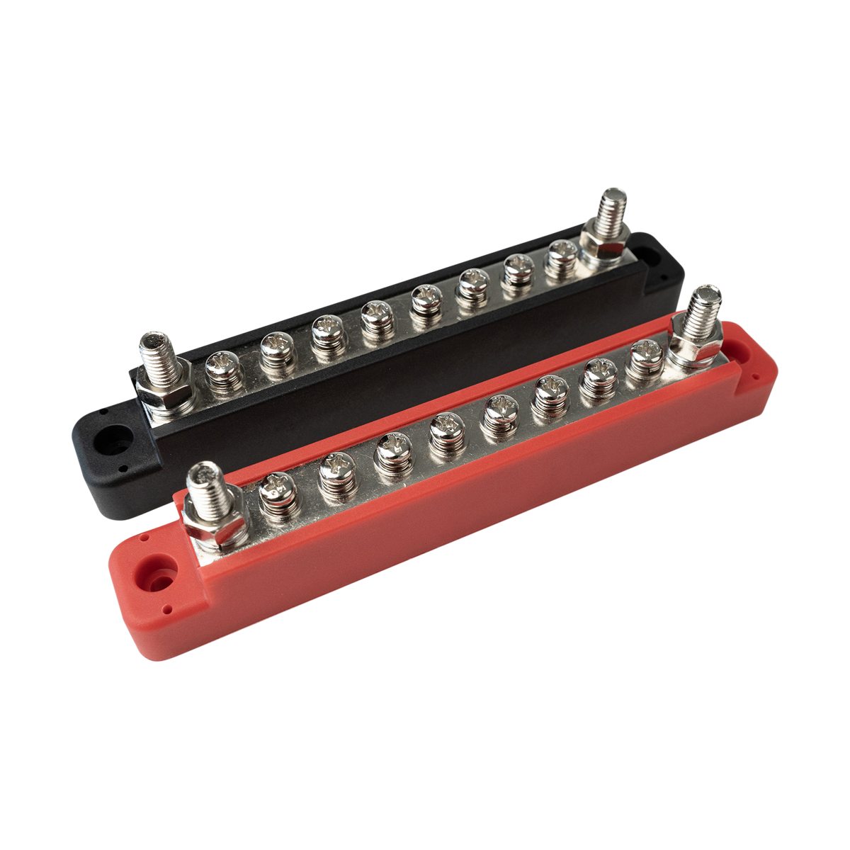 Tuff Terrain 100A 10 Terminal Busbar – Positive & Negative (M6 Stud / M4 Screw Terminals)