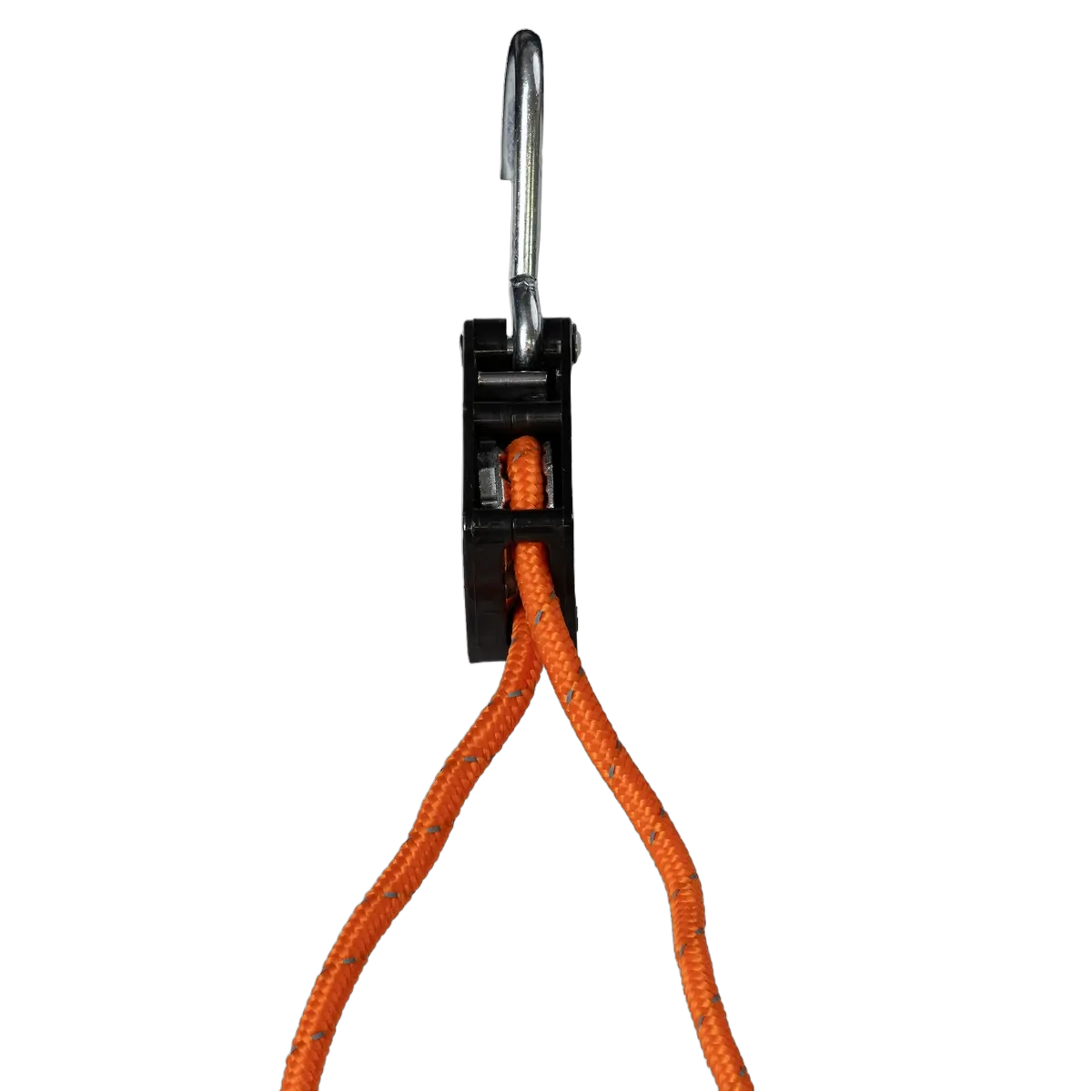 Introducing the Tuff Terrain Ratchet Rope Tie Downs - the ultimate hassle-free way to secure your load while on the go. With a Tuff Terrain ratchet tie down, there is no need for complicated knots, simply secure each end of the Tuff Terrain Tie Down Ratchet Rope and pull the rope to secure it tightly. Quicker than a traditional ratchet strap without the annoyance of straps getting caught and tangled. These tie downs are designed to provide maximum strength and durability, making them perfect for a wide range of applications, including camping, boating, and transporting cargo.