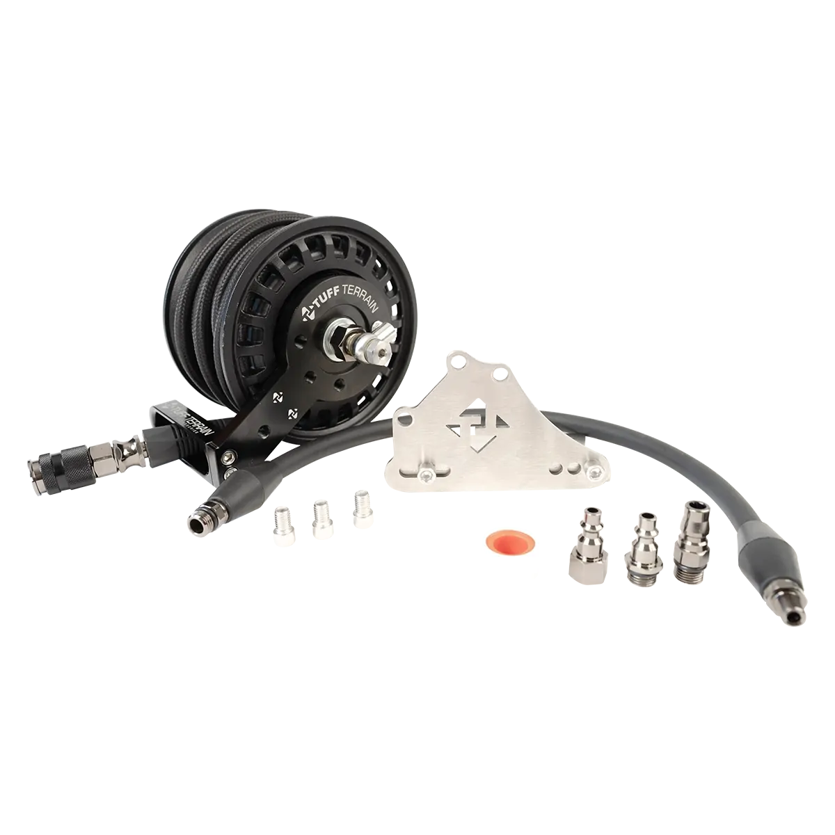 The Tuff Terrain Air Compressor is the ideal match for this model. It provides the right airflow and pressure, and it connects directly using the fittings included in the kit. Most 12V and portable air compressors will also work.