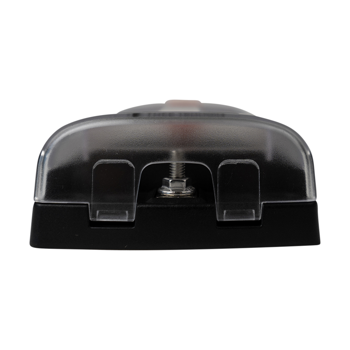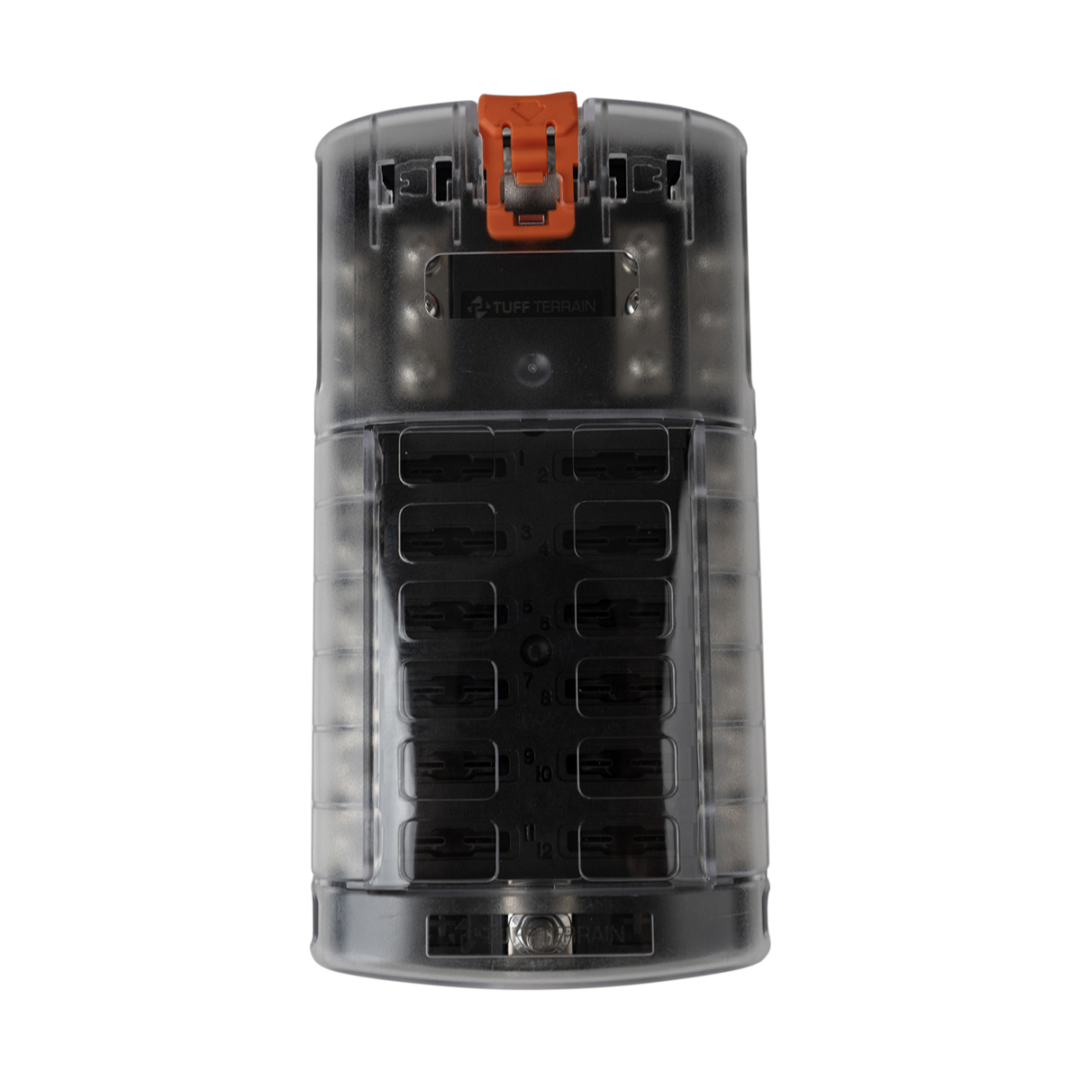 - Cover incorporates an easy to open push button latch providing easy access to fuses