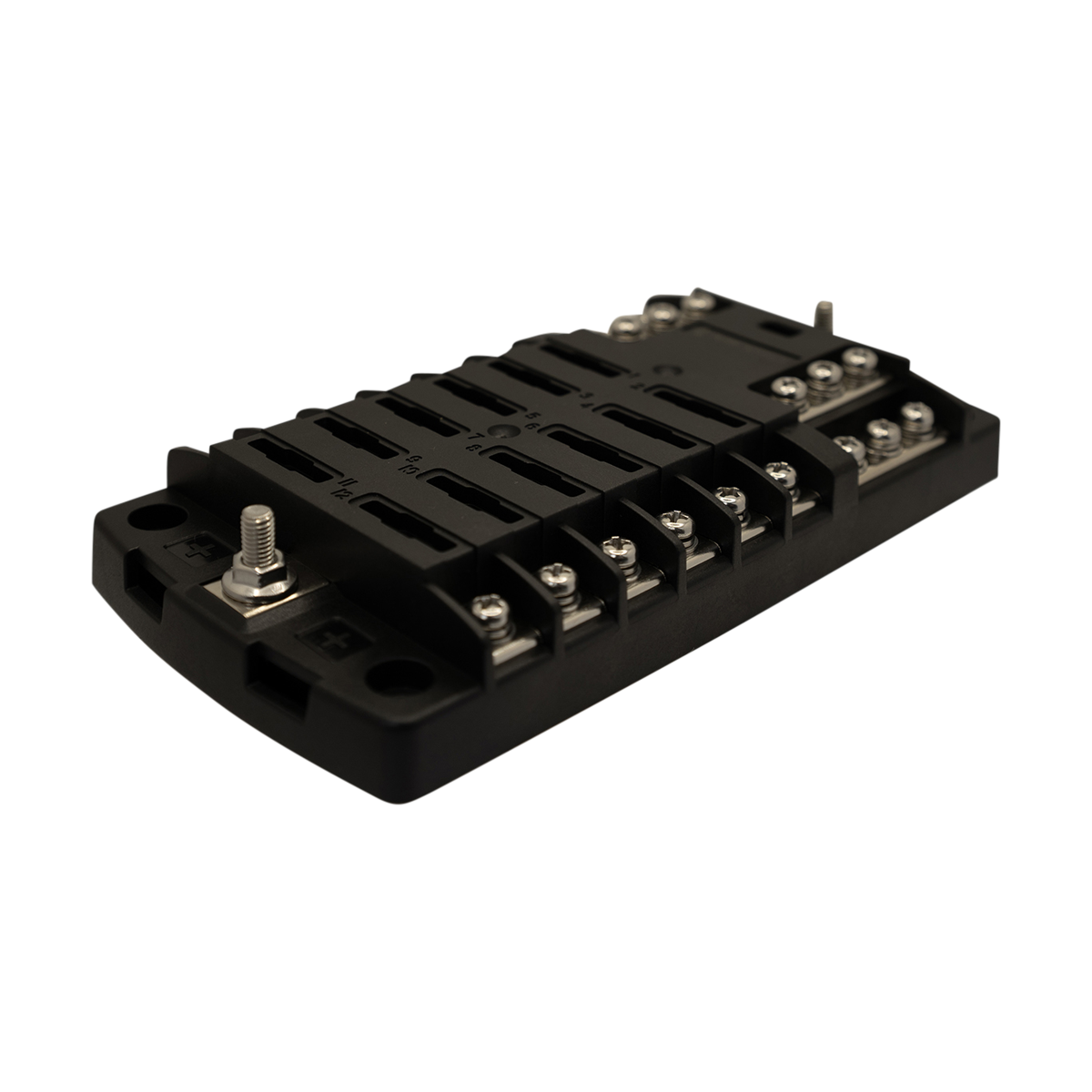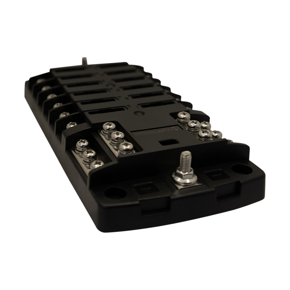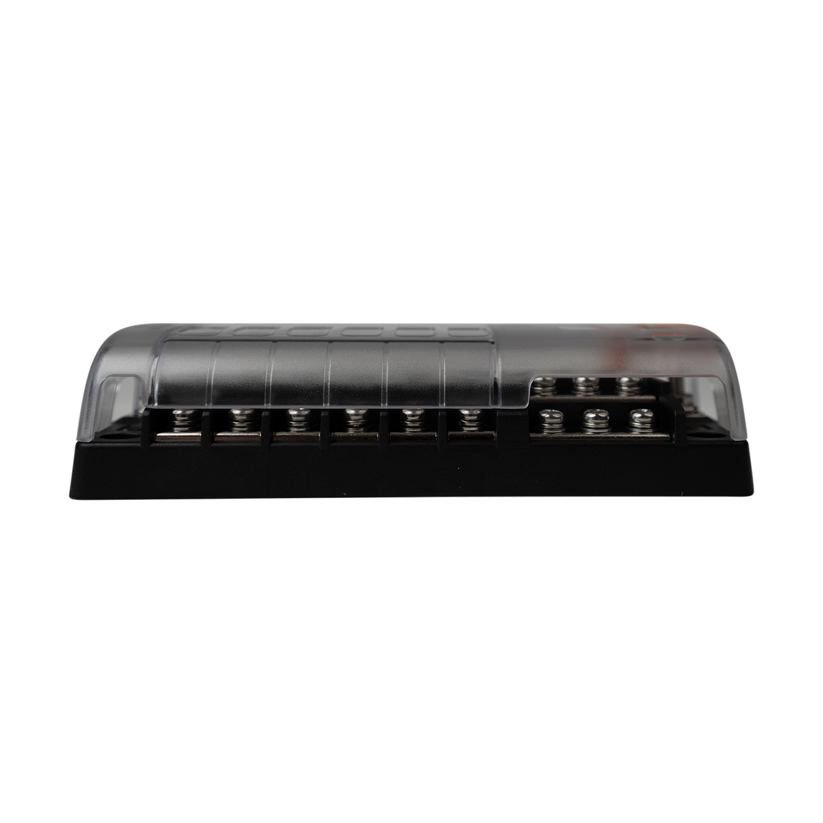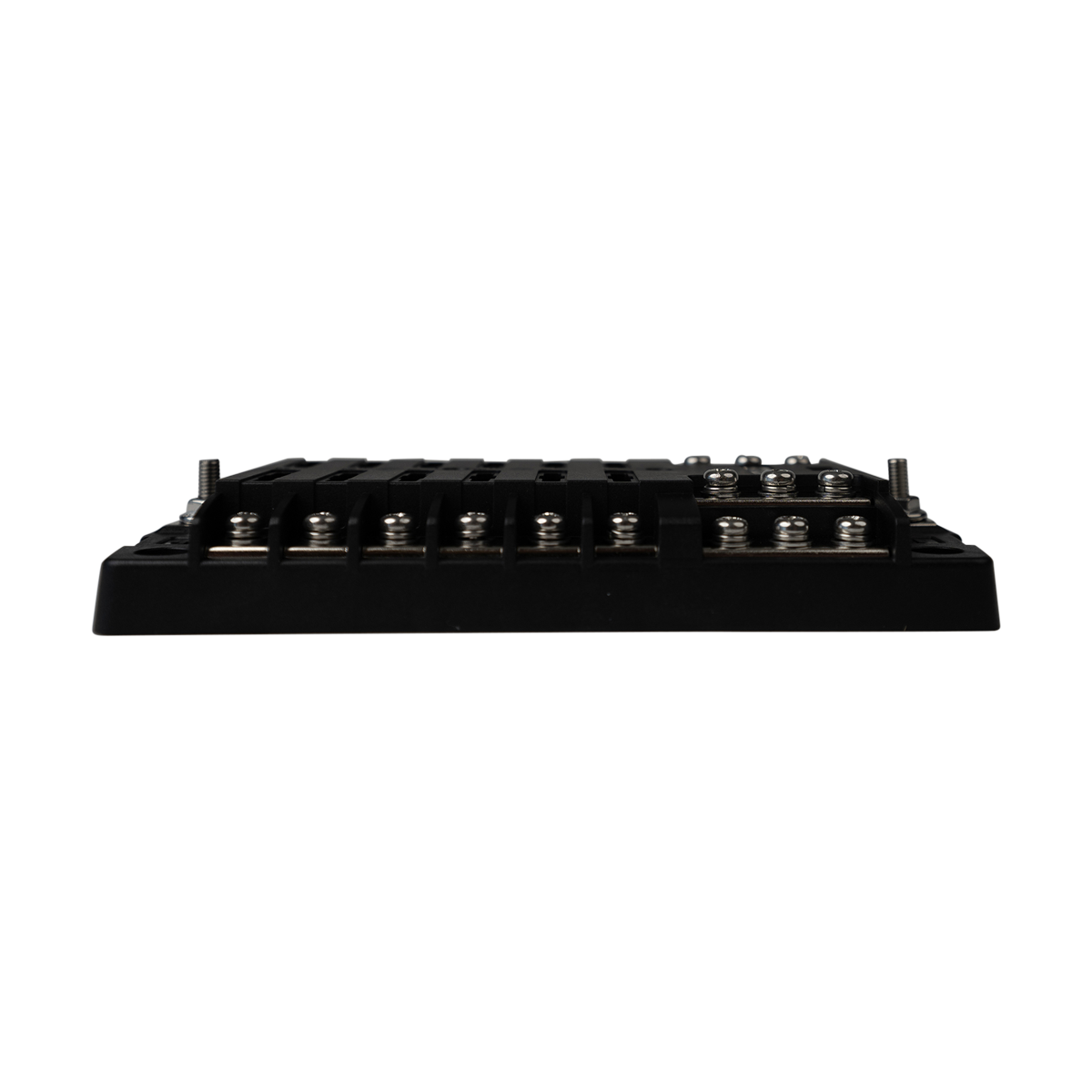 | max volts(V)48V max amps(A)100A bolt sizes M4 overall dimensions(L × W × H)165 X84 X 38mm Max 30A per circuit |