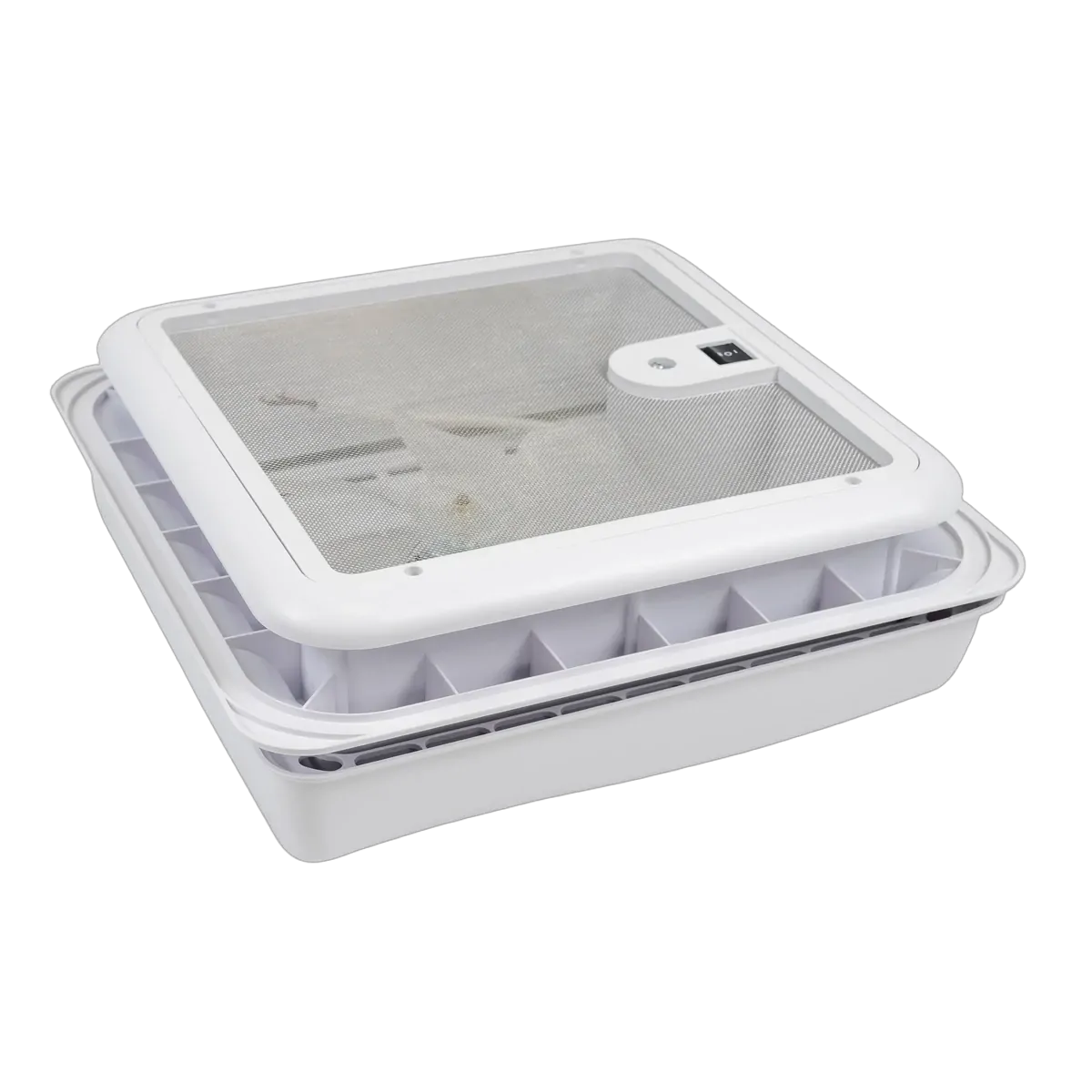 The European style of Fruecamp Roof Hatches is an essential component for any Caravan or RV to ensure sufficient ventilation. This high quality 320 x 320mm roof hatch is specifically designed for the shower and bathroom. It features a forward and reverse airflow fan, perfect for quickly moving air in and out.
