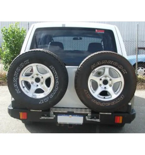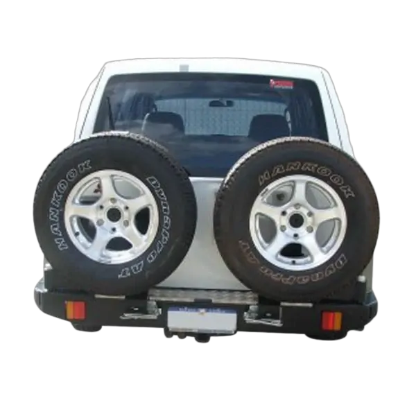 Developed to handle the toughest terrain Outback Accessories Twin Caddy wheel carrier gives you the ultimate in rear-end protection plus improved off-road ability and the safety and security of dual spares.