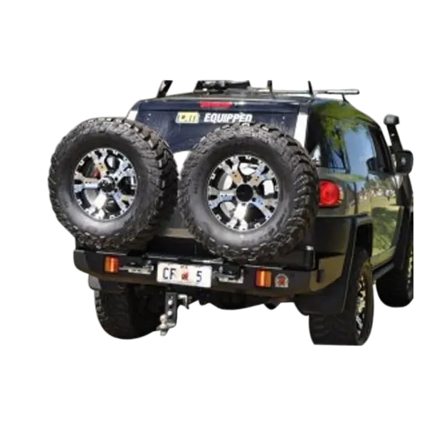 Developed to handle the toughest terrain Outback Accessories Twin Caddy wheel carrier gives you the ultimate in rear-end protection plus improved off-road ability and the safety and security of dual spares.