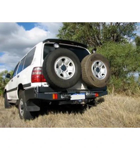 Developed to handle the toughest terrain Outback Accessories Twin Caddy wheel carrier gives you the ultimate in rear-end protection plus improved off-road ability and the safety and security of dual spares.