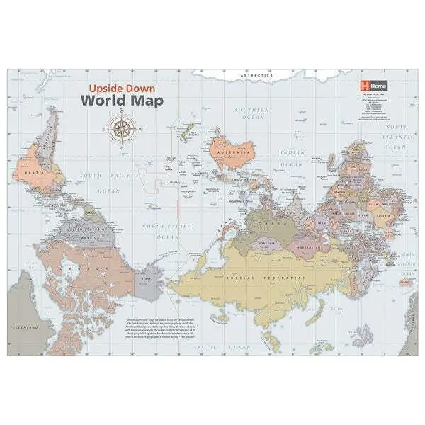 Upside Down World Classic Map - 840x594 - Unlaminated