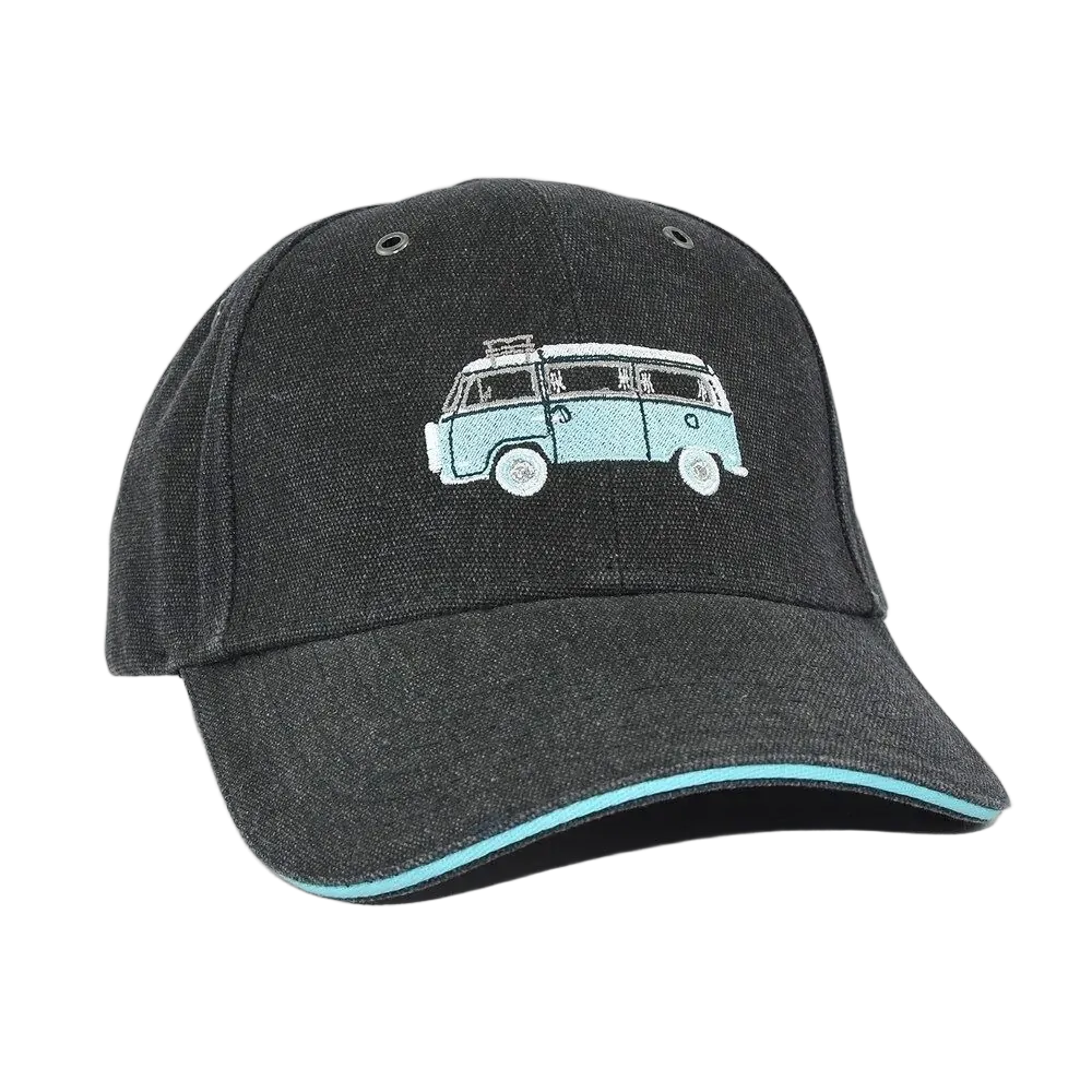Our peaked cap is made from the highest quality 10oz washed canvas consisting of 70% Cotton / 30% Polyester and features an embroidered caravan motif on the front and an adjustable strap at the back.