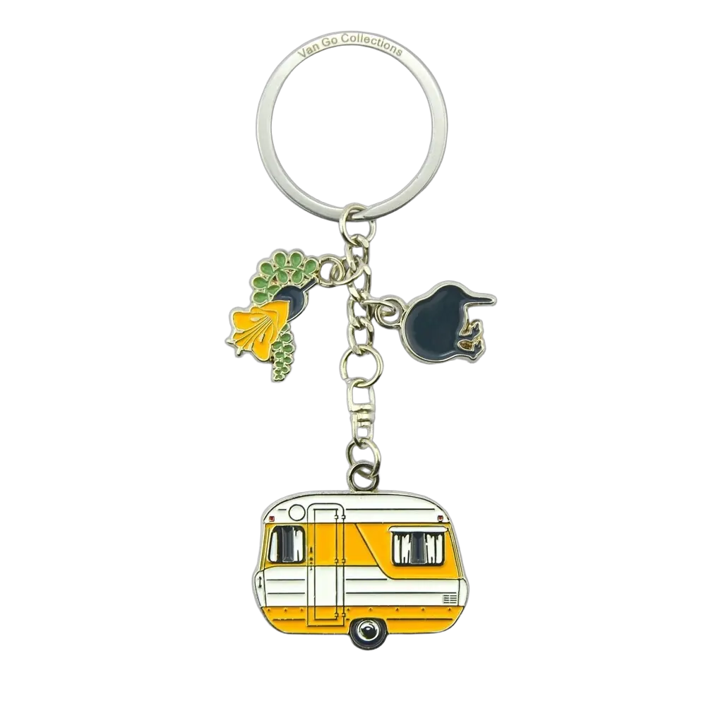 Featuring iconic caravans adorned with matching charms, finding your keys will be easy with our fun and colourful double-sized keyrings.