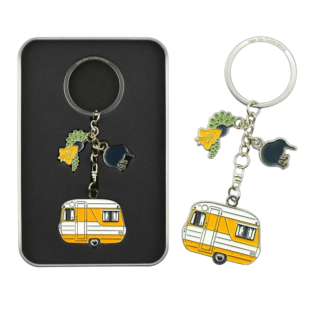 Presented in a reusable metal gift box with our logo embossed in the lid, or keyrings are made from durable metal, with vibrant enamel colouring and a swivel chain. These caravan keyrings are the perfect gift for friends, family and those who appreciate great design.