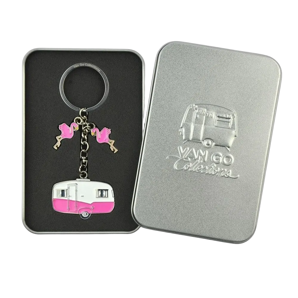 Presented in a reusable metal gift box with our logo embossed in the lid, or keyrings are made from durable metal, with vibrant enamel colouring and a swivel chain. These caravan keyrings are the perfect gift for friends, family and those who appreciate great design.