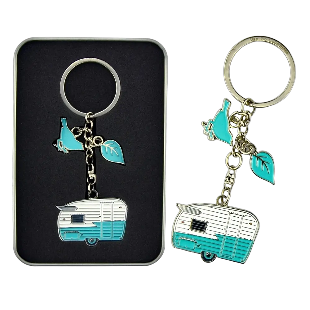 Presented in a reusable metal gift box with our logo embossed in the lid, or keyrings are made from durable metal, with vibrant enamel colouring and a swivel chain. These caravan keyrings are the perfect gift for friends, family and those who appreciate great design.