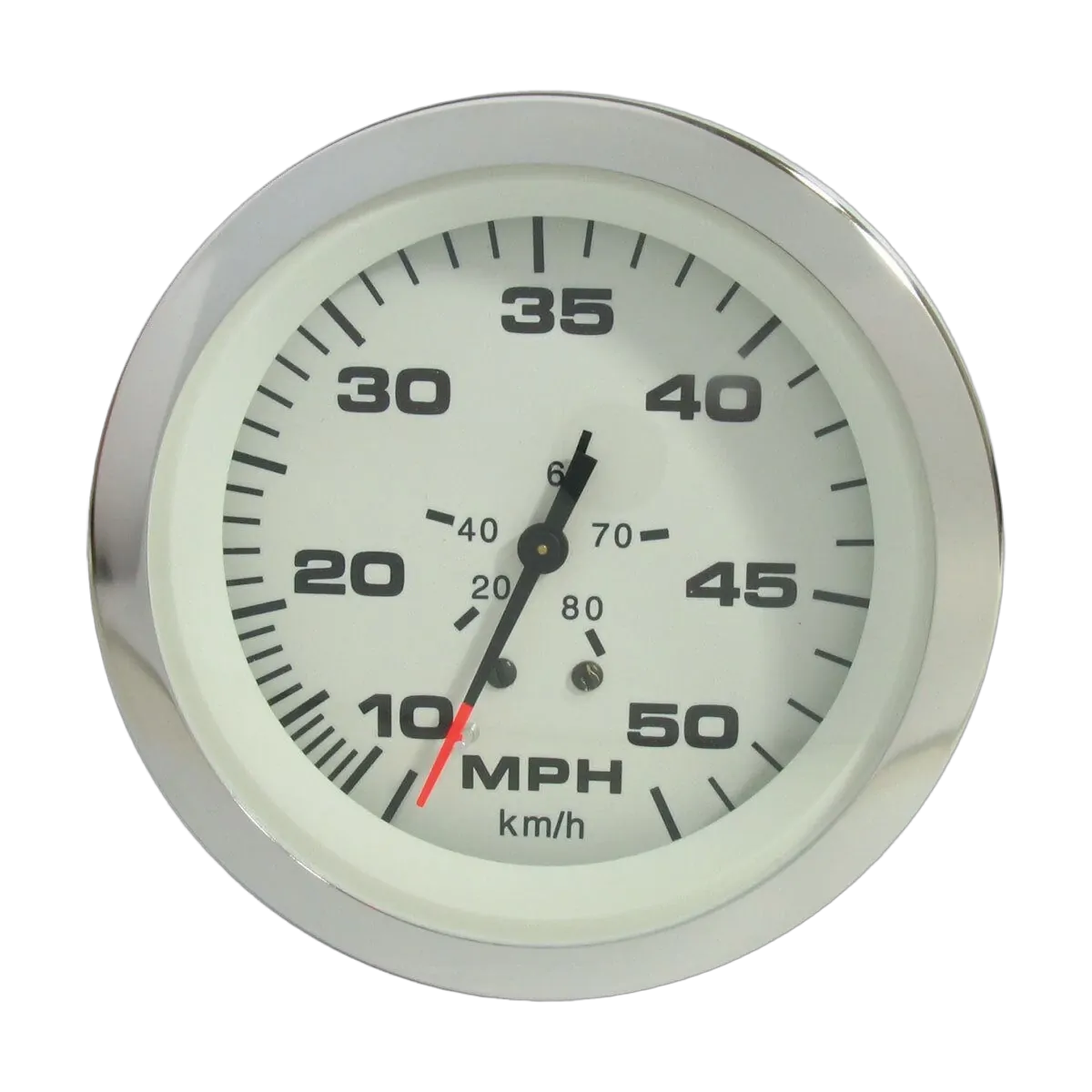 Features Highly polished, curved stainless steel bezel that eliminates water trapping Black graphics on a white dial background Pointers are black with a fire orange tip White perimeter and red through dial lighting Fog free, scratch resistant curved glass lenses Shielded to prevent magnetic interference Silicon dampening to eliminate pointer bounce Suitable for 24 volt application with the addition of a drop resistor (112394, 112396) and 24 volt bulb 112390 Kits include 20' of pitot hose\n\n[table id=2077 /]\n\n[table id=2076 /]\n\nAccessories\n112394 Drop resistor suit 75mm gauge\n112396 Drop resistor suit 50mm gauge\n112390 24 volt bulb