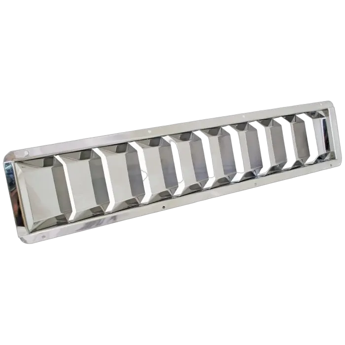 Polished 304 grade stainless steel vent with 10 x raised fl at top style louvres - ideal for engine room venting.
