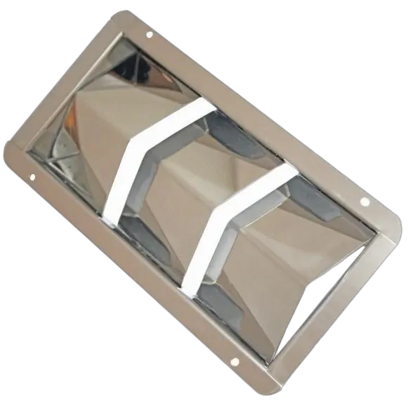 Polished 304 grade stainless steel vents with raised "V" style louvres - ideal for engine room venting.