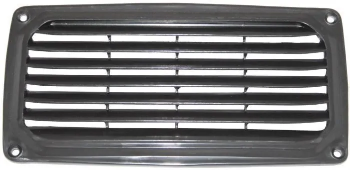 Moulded black ABS plastic louvred vent.