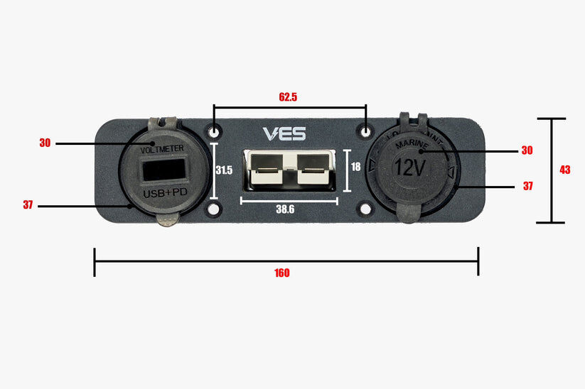 - 1 x Flush Mount holder with 50amp Anderson connector, usb c, voltmeter and usb quick charge socket and separate cigarette socket