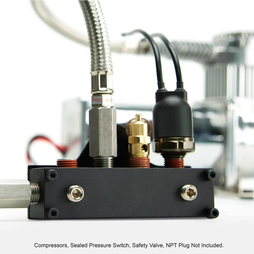 VIAIR’s ported billet aluminum manifold comes in 6 port or two different 8 port variations. These manifolds can be used to add extra ports to an on board air system. Each manifold can be used to connect compressors, air lockers, or other pneumatic items to the system with ease. The manifold is black powder coated for long-lasting finish and will simplify the expansion of your existing OBA system.