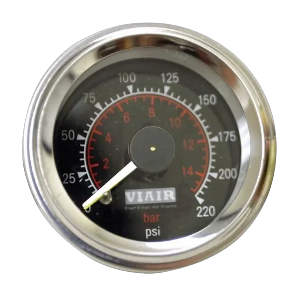 Viair Dual Needle Gauge 2″, 200 PSI, black face, illuminated.