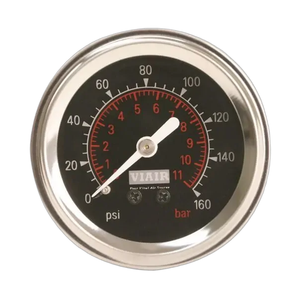 Viair Single Needle Gauge, 2″, 160 psi, white face, illuminated.