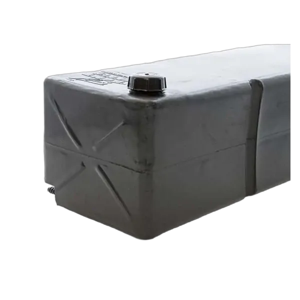 Moulded with slots along the sides of the tank to accommodate tie-down straps.