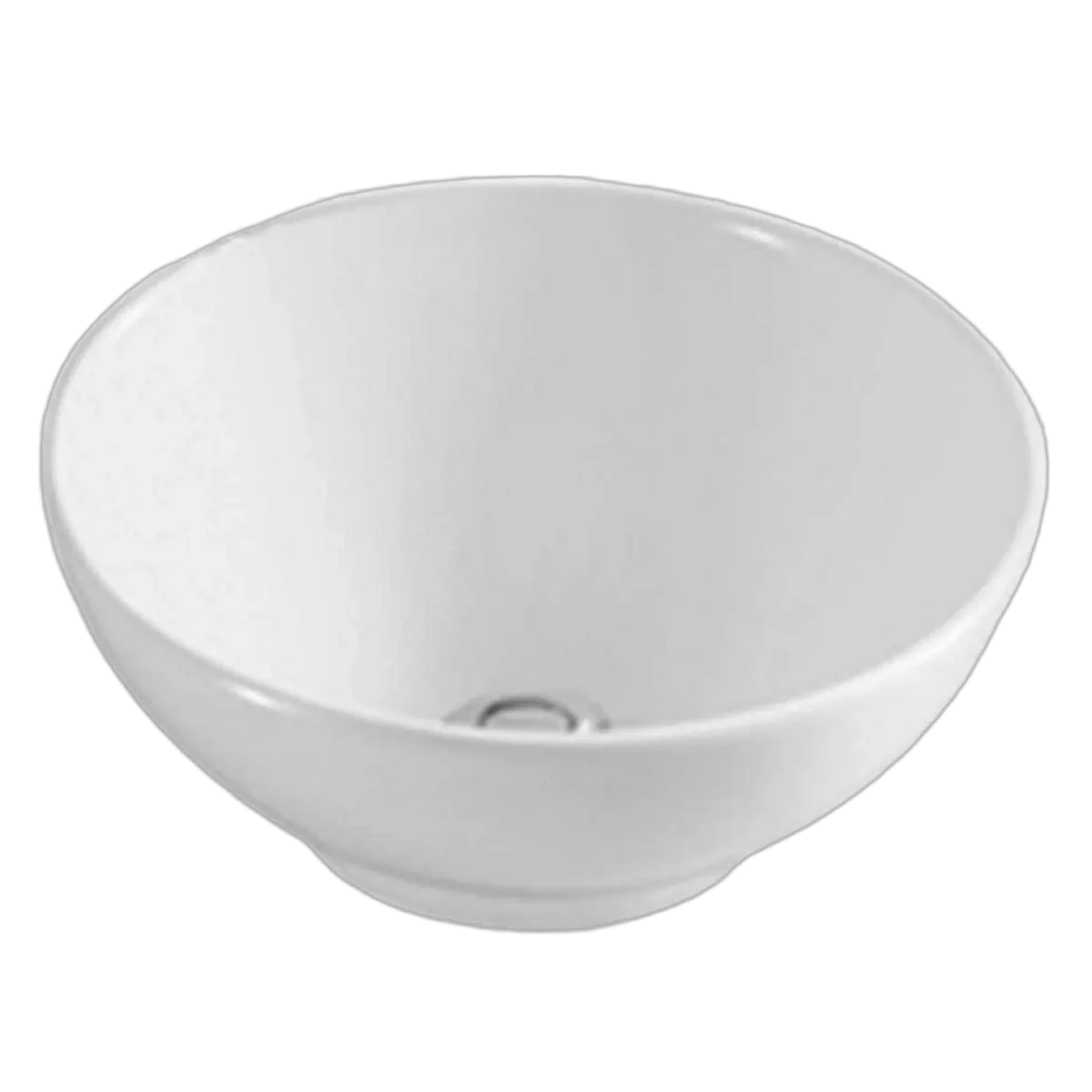 This modern, round ceramic sink basin is designed with a smooth glazed finish. Featuring a Fireclay construction for increased strength and durability, perfect for mobile applications.