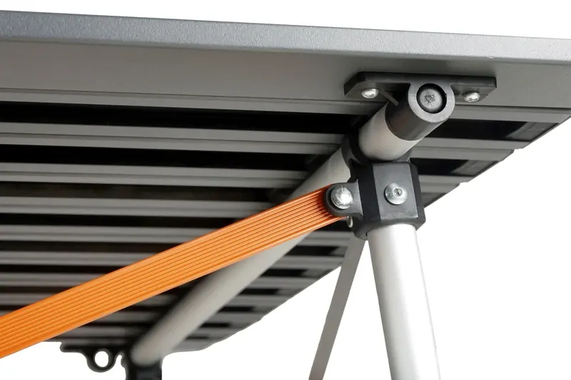 The inclusion of tension bars to keep the tabletop square and in position when in use ensures that you can enjoy a stable and reliable surface for various activities. This thoughtful feature enhances the functionality of the table, providing a sturdy platform for dining, preparing meals, playing games, or any other outdoor activity you have in mind.