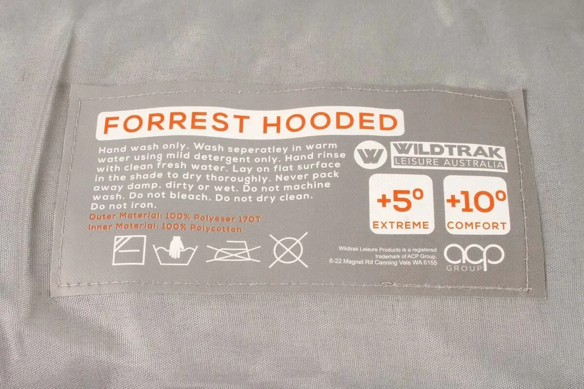 With a Temperature Rating: 5 to 10 degrees the Forrest Hooded sleeping bag is best used in a warmer climate such as the North of Australia.