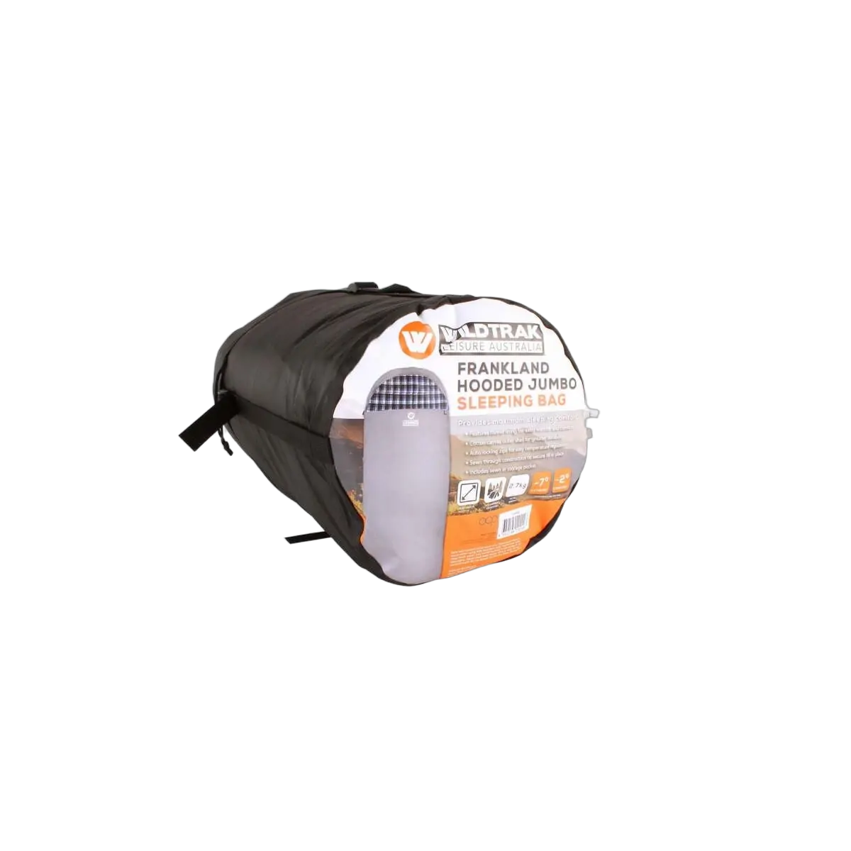 Measuring 230 x 90cm, the Frankland Hooded Jumbo Sleeping Bag offers a temperature comfort range of -2 to -7 degrees Celsius, ensuring that you can enjoy a restful night's sleep in various weather conditions.