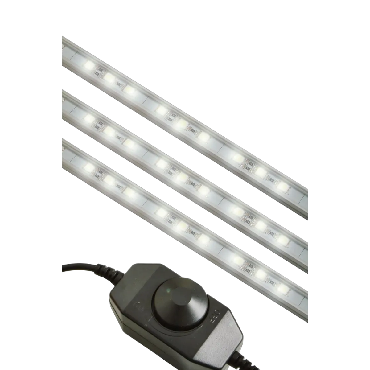 With 30 LEDs on each of the 3 rigid bars this light kit is perfect for your camp set up, whether under the canopy of a gazebo, tent or vehicle awning. The kit comes with a dimmer switch and multiple velcro straps and zip ties for easy mounting as well as mutiple extension leads.