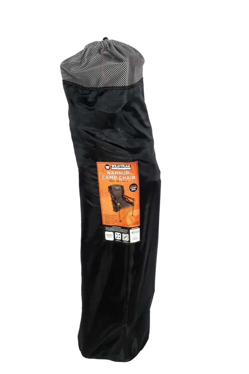 Designed for practicality and strength, the Deluxe Nannup Camp Chair comes with a handy carry bag for effortless storage and transportation, complete with a carry strap and elastic band for added convenience. With an impressive weight rating of 200kgs, this chair embodies durability and reliability for all your outdoor pursuits.