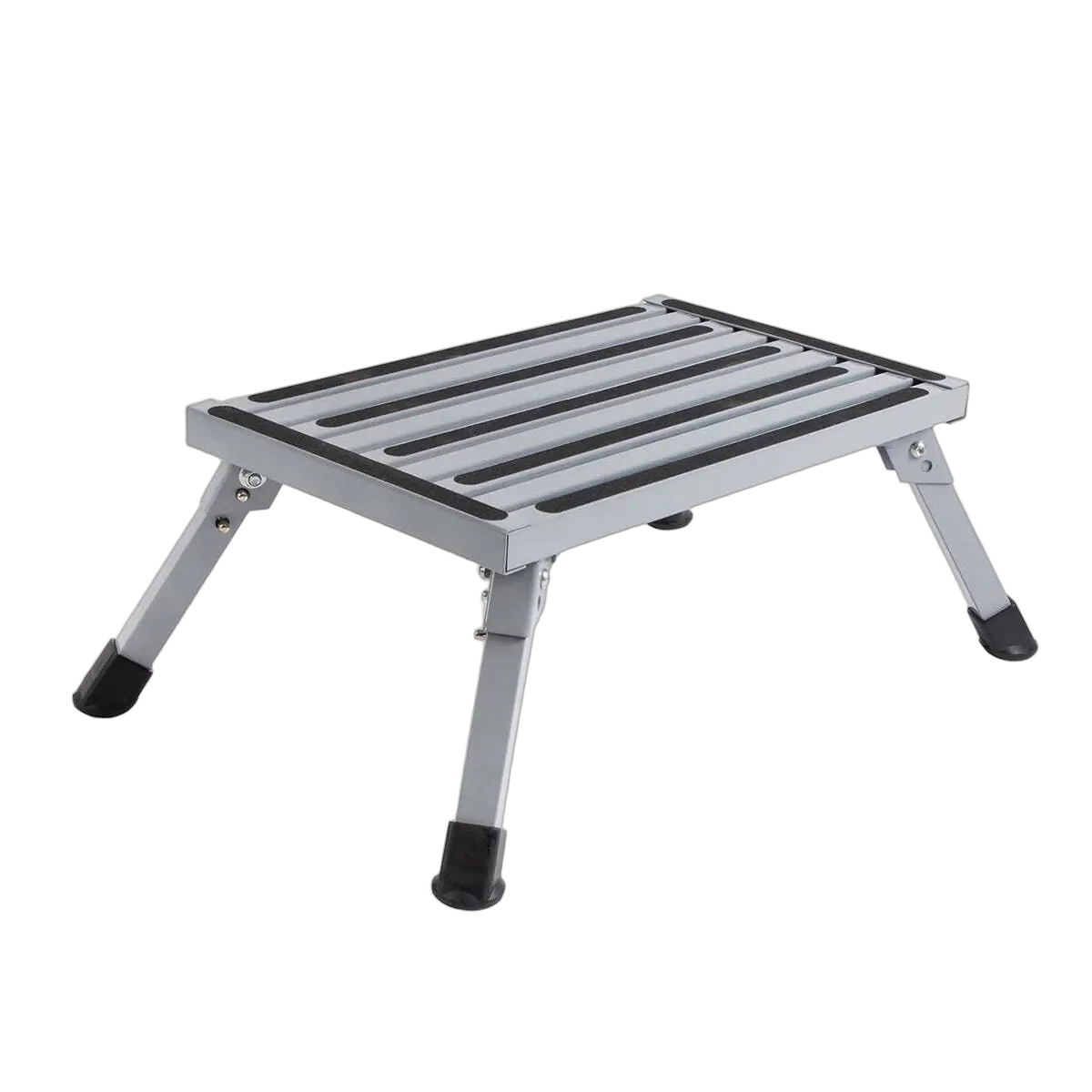 This steel step is covered with non-slip gripper strips, making it safe and to step on for reaching high shelves. Folds to compact size for easy storing when not in use.